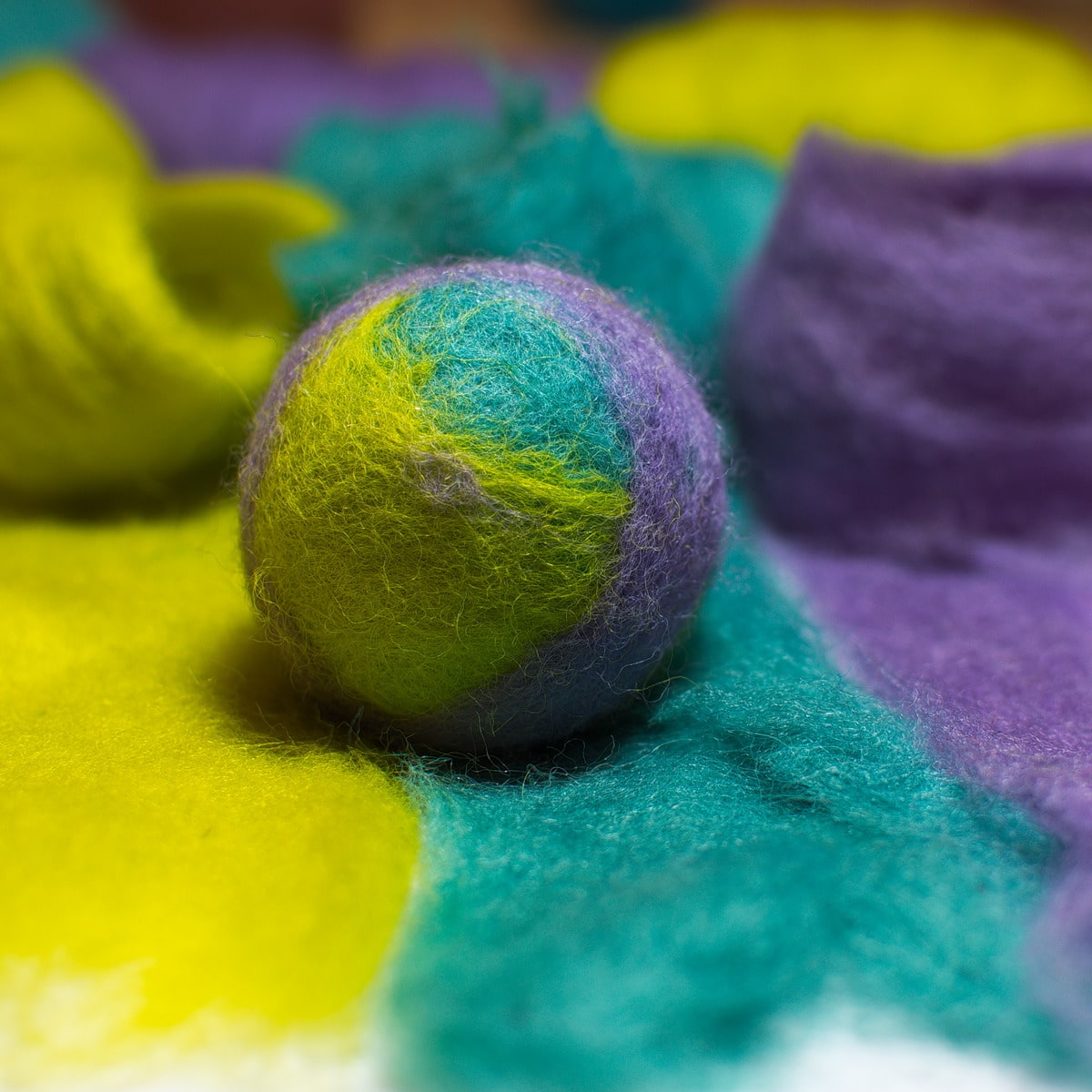 Isabelle vous initie au feutrage de la laine dans un atelier ludique et naturel… Les doigts danss la fibre, le savon, l'eau chaude, es couleurs se mélange et la magie opère !